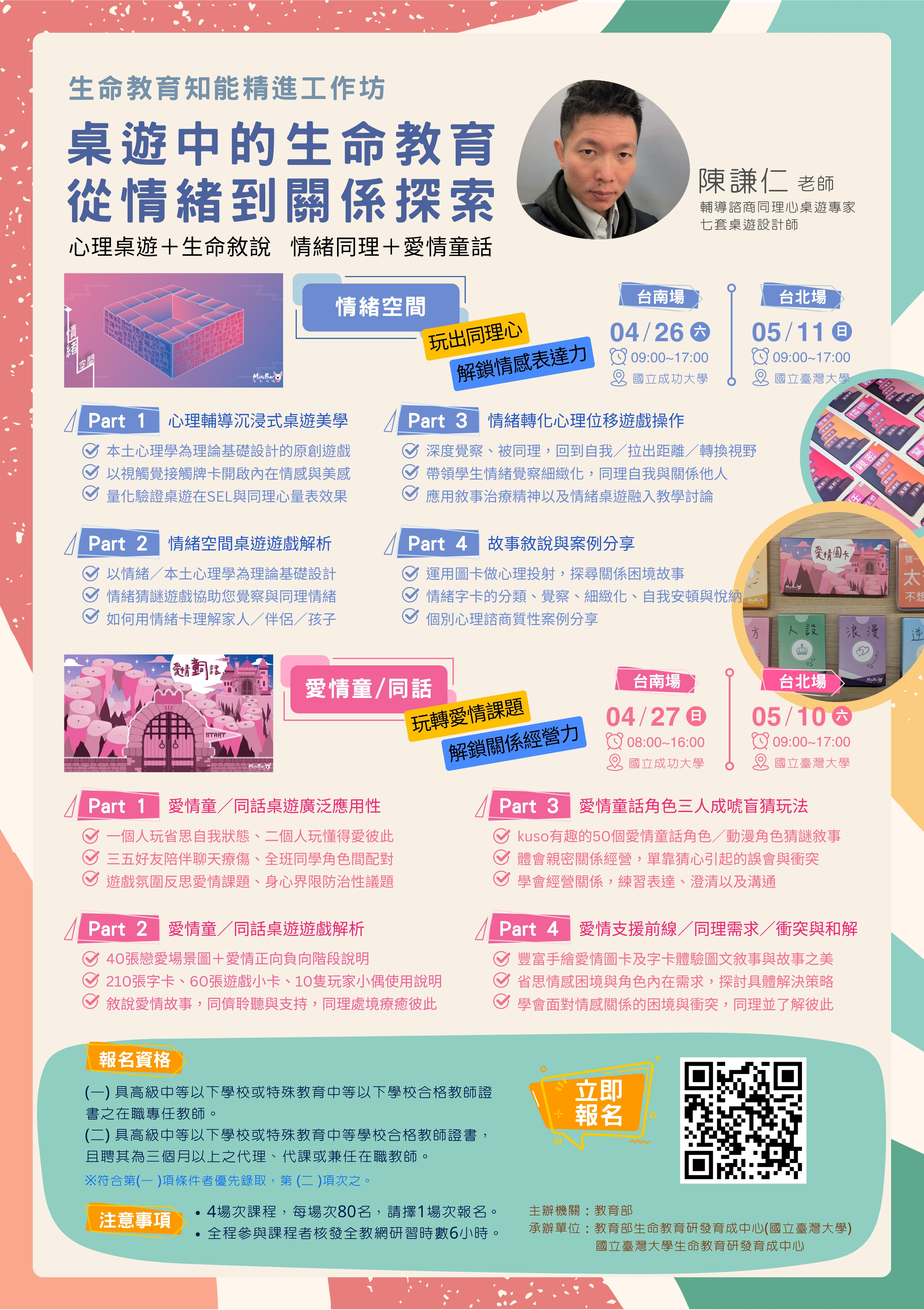 本研習規劃辦理4場次,詳細內容請參閱附件簡章及海 報。