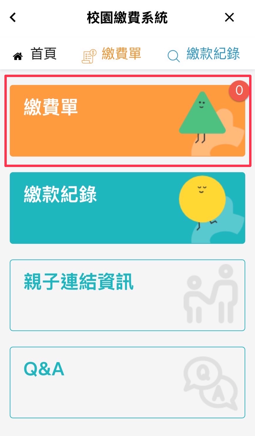 繳費路徑 : 酷課app>>校園繳費系統>>繳費單