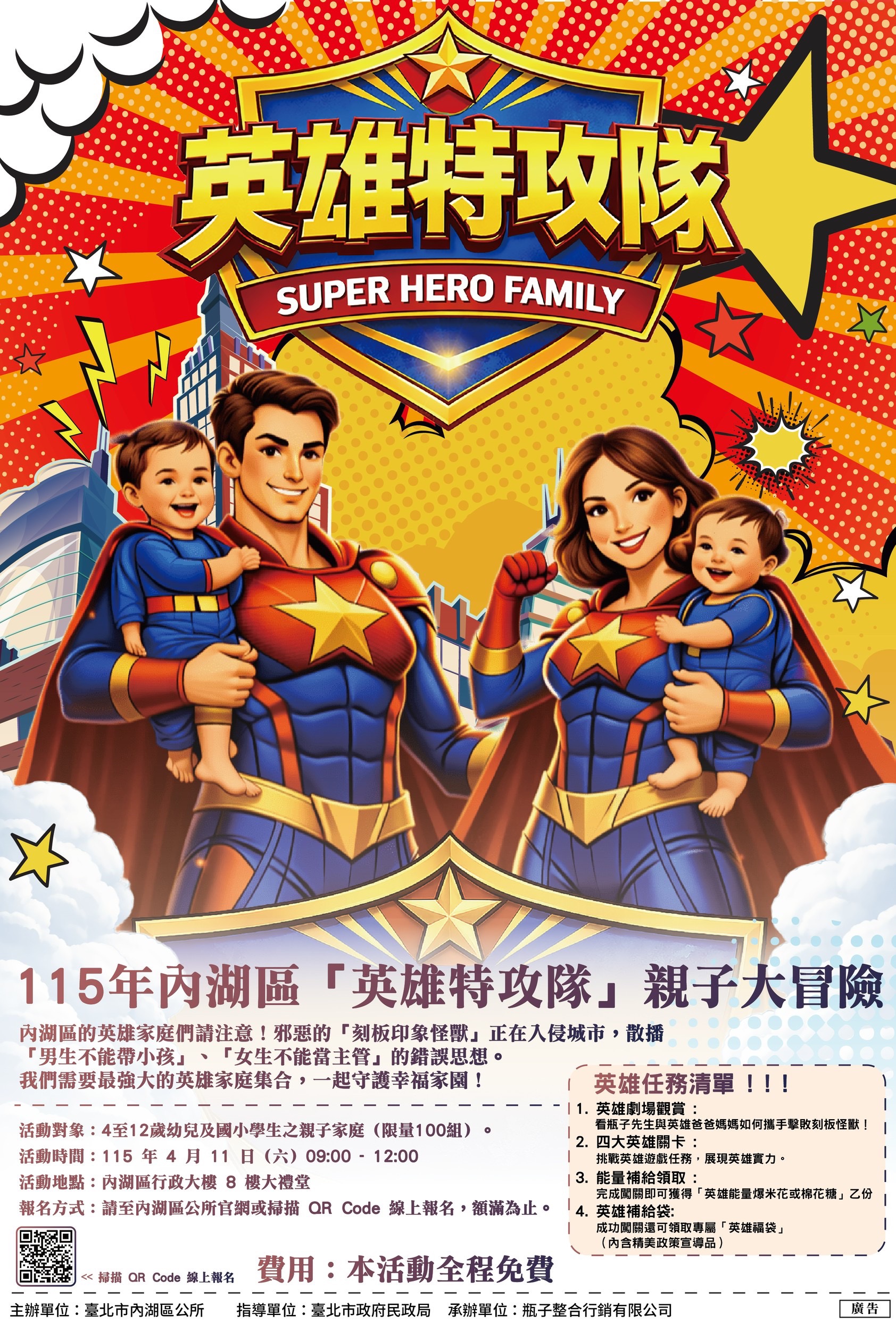 內湖英雄特攻隊徵召中!115年4月11日一起擊敗刻板印象怪獸。